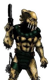 Biology: The Bitthævrians were a very strange looking humanoid species standing anywhere from 1.8 to 2.2 meters tall, and having a massive and muscular physique. Their bodies were roughly Human-shaped, however, their skin could range from any color on the spectrum of light tan to almost blackish-brown. Their coloration depended upon where they were born on Guiteica, with the darker Bitthævrians appearing up north, while the reds and pinks lived further south, and the light tans appearing only rarely, seemingly not limited to one location. This skin was incredibly thick and had a leathery texture, being nearly impervious to wounds that would penetrate the hide of most other species.