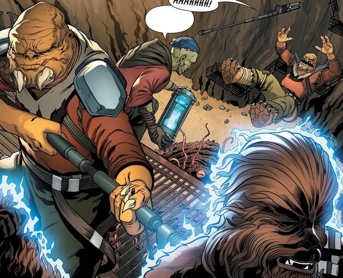 The next time we really see the species, a number of them had joined the organized marauder faction known as the Nihil in their fight against the Galactic Republic and the Jedi Order during the days of the High Republic. One of them, a man by the name of Pan Eyta, even rose to the rank of “Tempest Runner,” one of the few collective leaders of the group during their early days. All throughout this period, a number of Dowutins also became infamous bounty hunters, smugglers, and crime lords, although at least a few did take up more socially acceptable positions throughout the galaxy, such some of those found on the Jedi-allied world, Tenoo. Shortly before the start of the Clone Wars, we know a handful of Dowutins became bodyguards for the various crime syndicates, some also serving as slavers, while others were instead enslaved as gladiators.