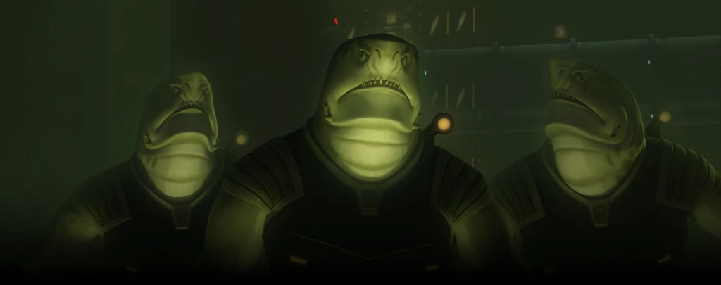 Legends/Canon: Karkarodon existed in Legends, but nothing has changed since their jump into the current Canon (made by default given their only EU-era appearances were relegated to the “The Clone Wars” animated series).