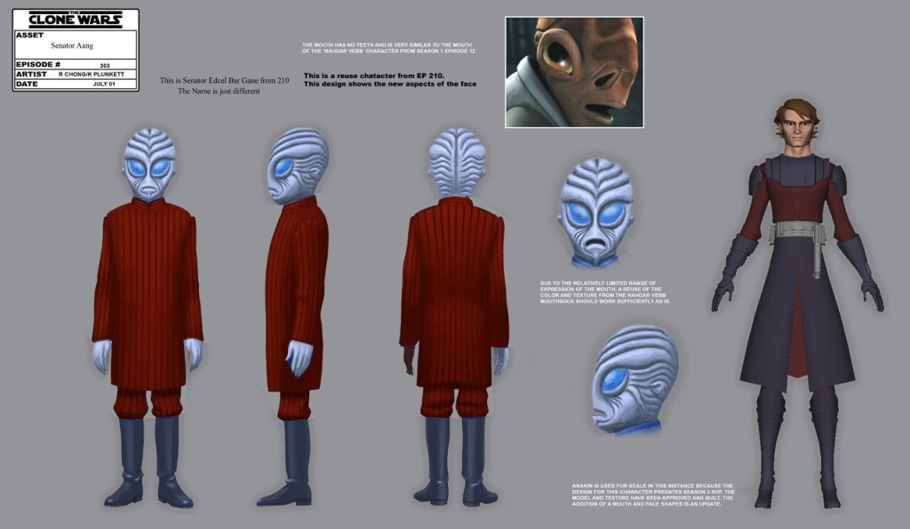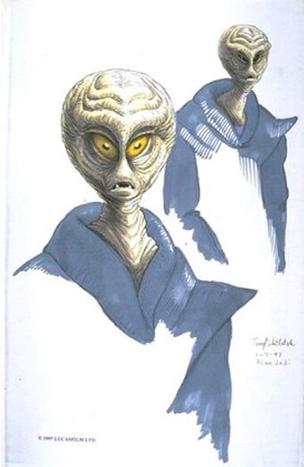 Additional Notes: The Roonans were actually originally based off of an unused Jedi design for Star Wars Episode I: The Phantom Menace, similarly to Patrolians, Ensel, etc. However, while species like the Patrolians kept their same general design, the Roonans were changed quite substantially in appearance. As a homage to these early concepts, the Jedi, Halsey, was later added to Star Wars: The Clone Wars. Halsey displayed a great deal of flexibility and agility for his shot demeanor, and it is unknown whether this is a trait shared among all Roonan or not. Unfortunately, it will probably not be explored much further, as Halsey met his untimely end only moments after being introduced.