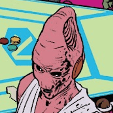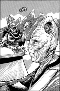 Continuity: The Adarians were originally set to make their first appearance in Jabba’s Palace in Star Wars Episode VI: Return of the Jedi. Unfortunately, even though the puppet/costume was created (see below) they were cut from the finished product. They would linger outside of Canon for some time following Disney’s acquisition of the franchise. Fortunately, they were finally Canonized in the Smuggler’s Guide Reference Book, and their appearance was reinstated in the Lando ROTJ one-shot a few years later, although there is still next to no lore surrounding them canonically.
