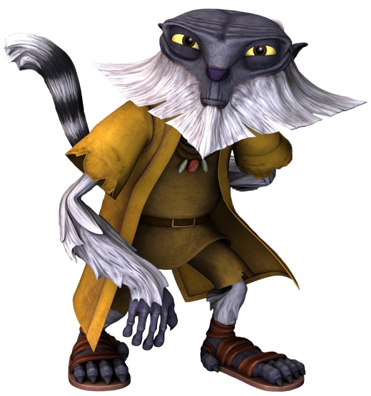 Biology: Lurmen are a small, simian creature hailing from the snowy planet of Mygeeto. They closely resemble real life lemurs, with little variation. They have rather large hands and claws, tufts of hair extending out of the sides of their head (which is generally a different color from the fur on the rest of their body), and large, yellow eyes with red or black pupils. They had large fluffy tails and their fur is usually striped or splotched with much darker shades. The hair on their faces is substantially shorter than that on the rest of their bodies. They also have the ability to curl their body up into a ball and roll around at high speeds, similar to Amani (or even Droideka).