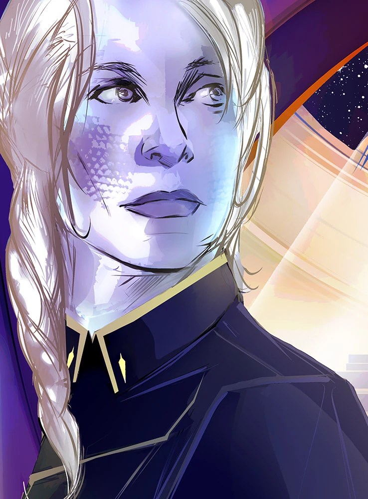 Biology: The Soikan were a little-known near-Human species originating from the planet Soika. From what we know, they were nearly identical to the average Human, save for a few details regarding coloration as well as their pointed ears. The Soikans were split into two subspecies, the “Gagic” and the “Livtak,” one with silver in their pigmentation and the other more solid lavender in coloration, although which one is which has seemingly not yet been revealed. Their skin had a unique reflective sheen to it, giving them an almost glowing appearance under the right light. They have also been observed with shimmering, silver hair and bright lilac or purple eyes. While they shared the same general body shape and build as Humans, they were also noticeably naturally tall, often standing at or just above 1.8 meters on average.