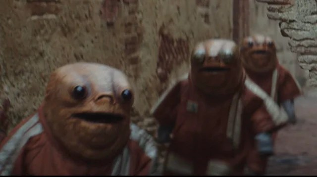 Biology: The Dwuni were a small sentient species that was introduced in Solo: A Star Wars Story. They were diminutive in nature, seemingly standing anywhere from 1 to 1.2 meters in height. Their skin was a dull orange in coloration, presumably the same or a similar color as the dirt of their homeworld. They had rounded bodies with short pudgy limbs, their hands appearing to possess three fingers each. They had large heads and no real neck, with a big chin and lower jaw.