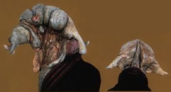 Biology: The Tocoyans were a little known alien seen occasionally in the Star Wars universe. They had fairly humanoid bodies, but stood with a slouch, making them slightly shorter than the average Human or near-Human species. They were observed being quite a few different colors, including grayish-blue, dark green, orange, or even pink. They also sometimes possessed distinct natural markings or patterns on their bodies that were generally asymmetrical in design. The Tocoyans were completely hairless, their skin loose and wrinkled and their limbs slim and oftentimes rather gangly. From the neck down, they were surprisingly similar to humanoids, however, their heads are where they are truly unique.