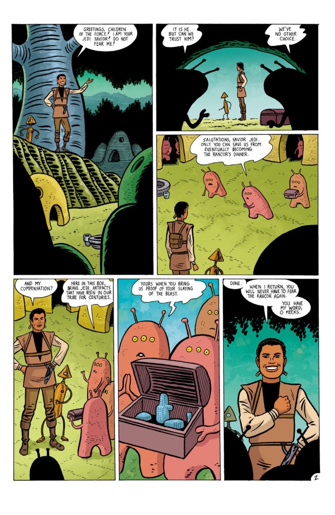 Unexplored: As mentioned above, the Meek may or may not have existed within the Star Wars universe, Legends or otherwise, as we know it. But some interesting groundwork and hints were laid during their brief eight pages worth of appearances and references. These include, what was the name (and location) of their homeworld? Why did they know of the Jedi’s existence, including the phrase “May the Force be with you?” How often had they been visited by outsiders? What was the purpose of their artifacts? When did the galaxy first discover and document them? Who had poached them, and for what reason? And how and why was a lone, mutated rancor found on their planet? There are lots of very specific questions here that I would love to see answered, although given their status, answers will most definitely never come.