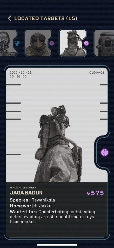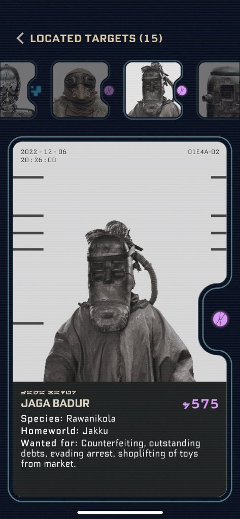 Lore: We really do know next to nothing about this species, outside of the fact that the one of the only instances we know of hails from Jakku and is a wanted criminal. Their crimes are all of the financial variety, aside from the fact that they also stole… toys? As to why shoplifting children’s playthings was a priority for them, we don’t really know. Until we learn more, we can only extrapolate information from the few instances we’ve seen, but at the very least we know they had been discovered and introduced into the rest of the galaxy sometime prior to the start of the First Order-Resistance War.