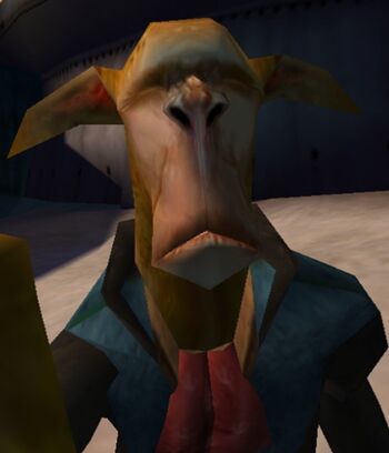 Extending from the sides of their heads were long, floppy ears that pointed out and downwards. These ears flopped around when they walked, but didn’t hang flat to the sides of their heads. The top of their heads also had a noticeable ridged crest. Clantaanis had enhanced physical strength, as well as an elevated sense of hearing, presumably due to the shape of their ears. They were also were known for having loud, often gruff or grumbling voices, having the capacity to pronounce Galactic Basic Standard rather easily. It also seemed they had a similar lifespans to that of the average Human or similar species.