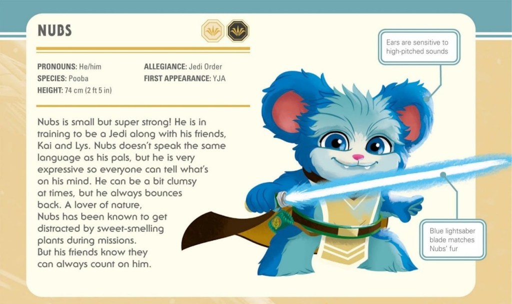 Unexplored: Since we know so little about this species, it would be best to simply explore the world building basics for now. I frequently list them in nearly every article on this site, but they include things like a species’ homeworld, level of development, politics, history, traditions, and other traits like that. We can technically dive into a few more in-depth questions such as whether or not all Poobas are Force Sensitive, or whether Nubs is just an outlier. However, I would like to reserve a lot of these questions until “Young Jedi Adventures” has finished airing in its entirety. In truth, I really don’t plan on watching the show, but I’m sure some fans will and they can relay any additional lore to me!