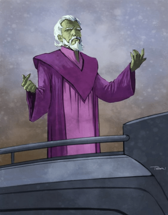 One notable trait the species possessed was their lack of blinking, possibly not even possessing eyelids, though, at the very least, they had a way to maintain their eyes’ moisture while remaining perpetually open. Hamadryas were capable of pronouncing Galactic Basic with seemingly no issue, though they also had their own language, also known as “Hamadryas” as well. Hamadryas were capable of reproducing with Humans, compatible enough to birth hybrid Human-Hamadryas offspring. These hybrids were known for being mostly Human-like, lacking the simian facial features, though they still maintained the distinct green pigmentation. Hamadryas seemed to usually have orange, orangutan-esque hair on their heads, and we know, at least with the hybrids, that this hair whitened with age.