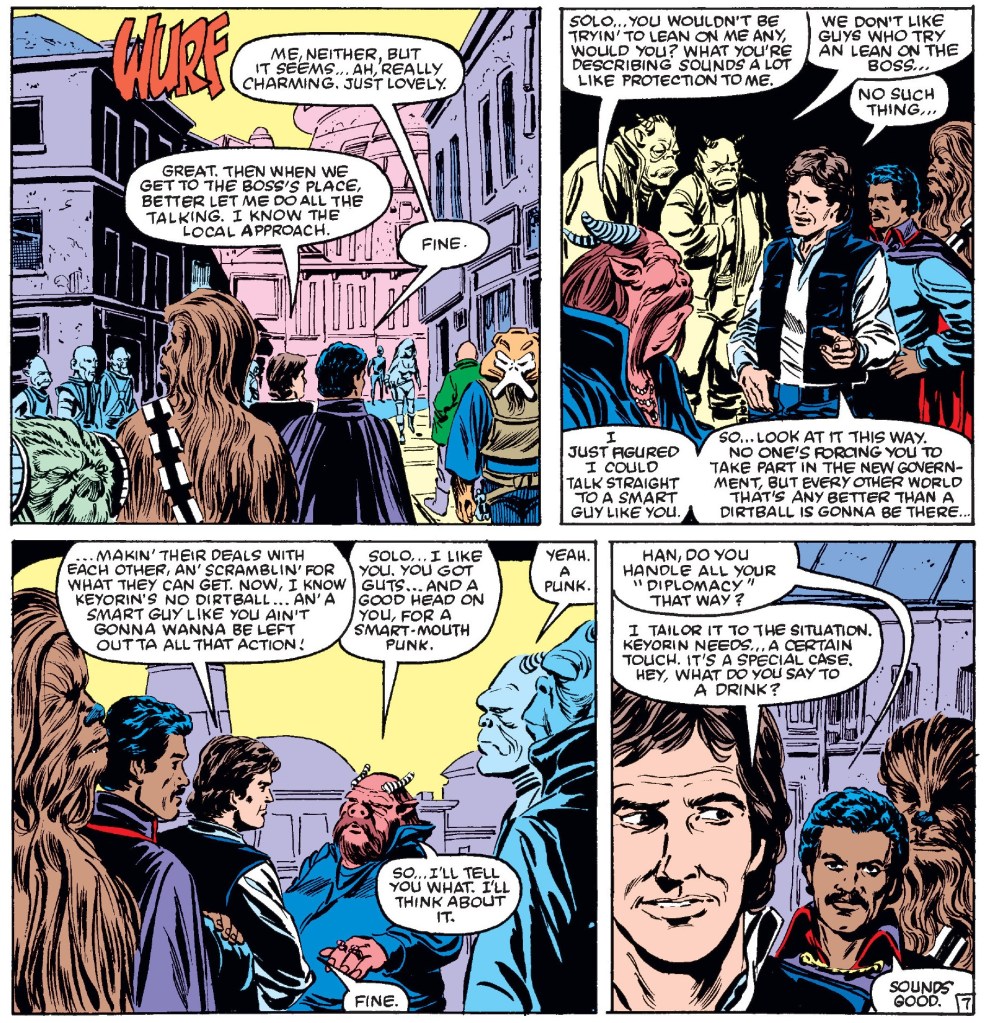 Additional Notes: While it’s not the most unique design in the Star Wars universe, they do hold a spot as being one of the earlier named members of the pantheon of sentient species, and as such, definitely deserve some level of recognition. It’s really neat to see species reappear in multiple issues throughout the OG comic run, especially when continuity didn’t mean nearly as much as it does today to both creators and consumers alike. Hopefully they will make their Canon debut in the foreseeable future, and honestly, they wouldn’t be hard to pull off in live action (there’s a very similar looking individual seen within the first season of The Mandalorian already)! Until then, however, we’ll just have these few brief appearances to go off of, which is definitely better than the numerous unidentified species who originated from the same source!