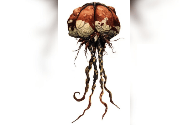 Biology: Celegians were an almost jellyfish-like sentient species officially classified as invertebrates. When fully upright, they could grow upwards of 2.2 meters from the top of their bulb to the tip of their longest tentacle, though many never quite reached this length. The species was fleshy and hairless, having lumpy flesh that was covered in knots and protruding veins. Most Celegians had two primary colorations, one a light tan, orange, or pink, while the other was a darker red or brown, with bodily patterns varying widely. On the very top of the rounded portion of a Celegian’s body was a starfish-like growth which split the body into five or six distinct segments that blended together at the bottom. Additionally, near where their tentacles sprouted from their body, some members of the species had a series of large, upturned, horn-like protrusions.