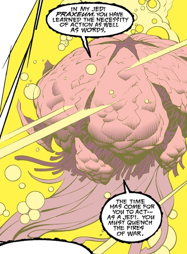 Unexplored: This section will address the species’ existence across both continuities, as the distinction is important enough to affect future endeavors into their lore. However, let’s begin with some ideas rooted in the EU that could still hopefully, possibly make it into Canon someday. So, when exactly did the species first develop sentience, and when in relation to that did they move from sea to land? What caused the species to evolve into the rather bizarre appearance that they possess? What do their internals look like, and what sorts of organs did they have or lack? How large and complex was their brain? What were the purposes of their various tentacles, tendrils, spikes, beaks, and openings? What was their baseline m-mount? What was the extent of their telekinetic and telepathic capabilities? And why were so few actually ever Jedi?