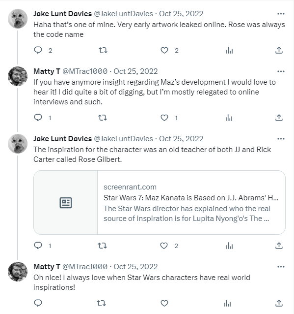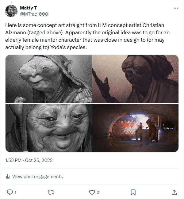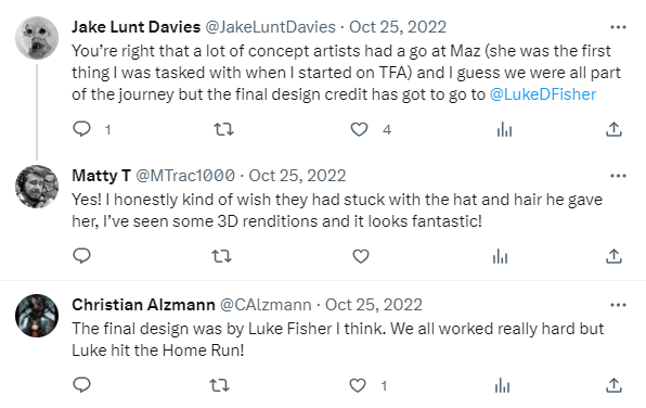 DAY 50 UPDATES: Christian Alzmann and the ever reliable Jake Lunt Davies provided some additional insight regarding the design mentality behind Maz, as well as helping to identify concept artists, sharing background info on the character’s inception, and pointing out that it was definitely Luke D Fisher whose final design made the cut.