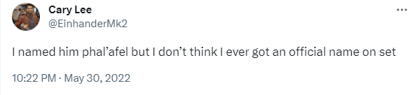DAY 14 UPDATES: Interacted with the actor who wore this suit, who revealed he had nicknamed the character “Phal’afel” while on set (which is why it’s included here, despite not being the official name).