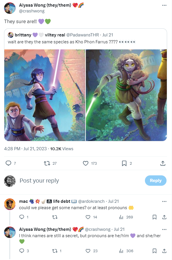 DAY 45 UPDATE: Two additional members of the species were revealed to appear in the The High Republic junior novel “Escape from Valo,” and not long after the “secret” species was finally given a name: the Alcedians (thanks to a starwars.com databank entry)!