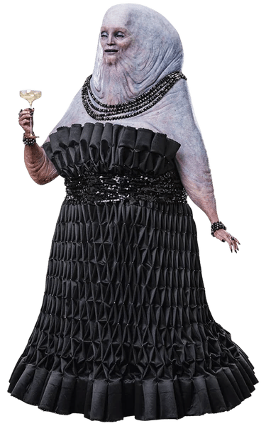 These two individuals have slightly tweaked costumes compared to the ones seen above but presumably utilize the same masks. Their names were Bosvarga and Cerensco, twins who were hired and later killed by Ochi. The individuals above are tentatively referred to as Ommo Twilto and Dered Karno, technically never making it into the Episode IX, although because these promo images made it into a Canon Dictionary and Encyclopedia, they are still considered their own separate characters. In fact, author Adam Christopher theorizes that they may have been intended to have appeared at the festival on Pasaana at the beginning of the film.
