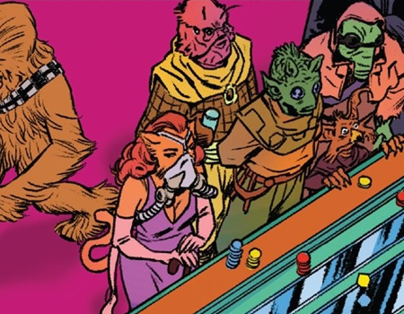 DAY 24 UPDATES: A pinkish member of this species appears in “Return of the Jedi – Lando #1,” one of many recurring species Easter Eggs in the crowd shots of this issue that is seemingly colored at random!