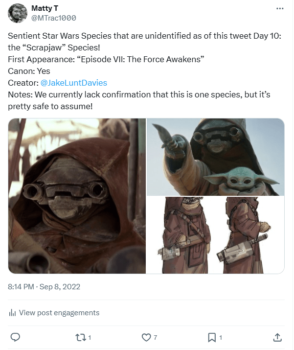 DAY 10 UPDATES: The “Scrapjaw” species continues to make regular appearances across Star Wars media, even making their way into “The Mandalorian and Child” children’s picture book. With this level of prevalence, I still believe it’s only a matter of time until this species receives an official name/classification!