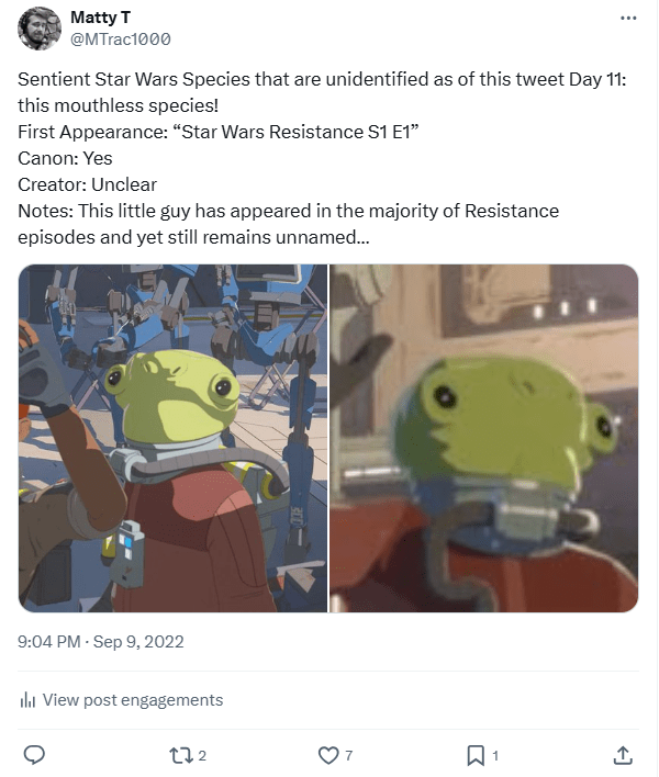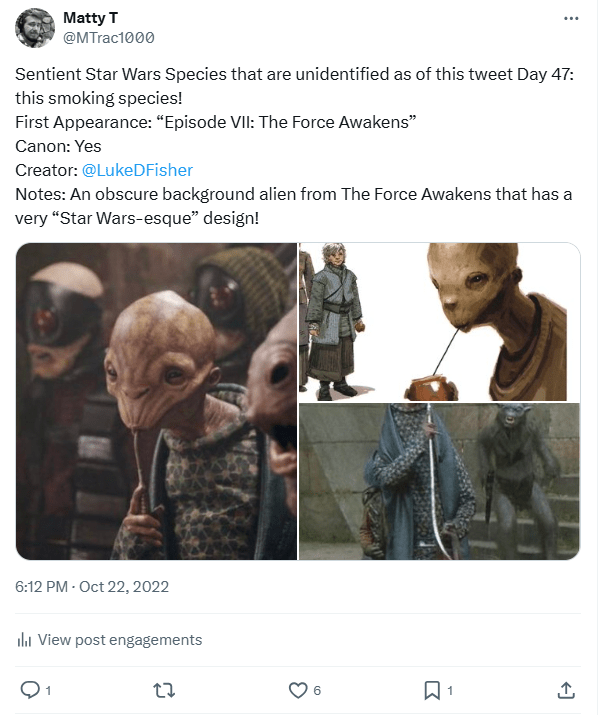 DAY 47 UPDATES: The species reappeared briefly in Andor, making them notable enough for me to make them a quick Wookieepedia page as well: https://starwars.fandom.com/wiki/Unidentified_species_(Takodana)!