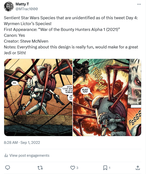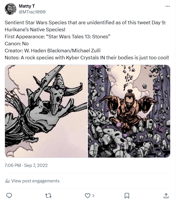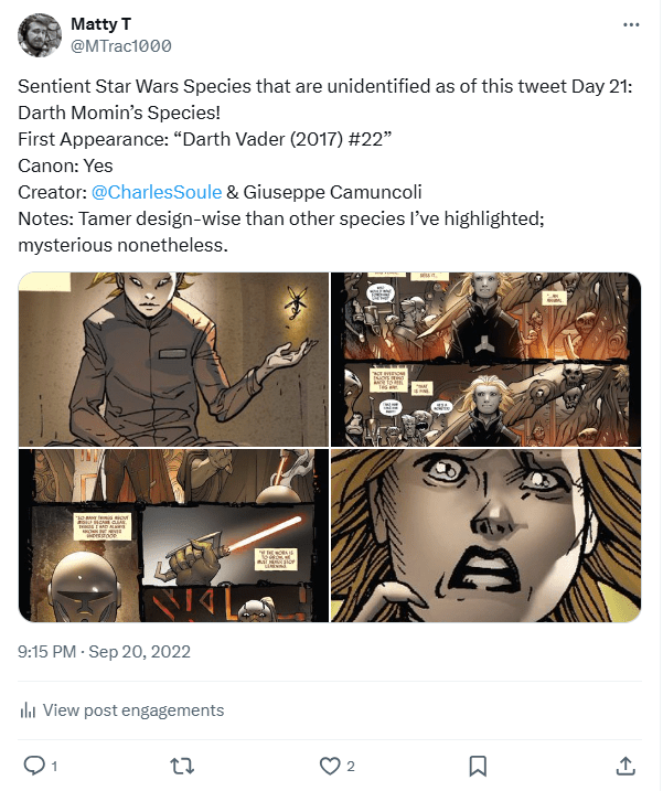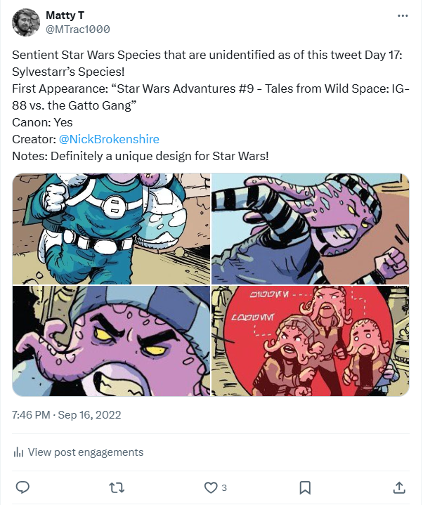 DAY 17 UPDATES: Interestingly, the species has reappeared in “Tales of Villainy: A Very Nihil Interlude,” a short comic from “Star Wars Adventures (2020) 14.” Across both appearances they were illustrated by