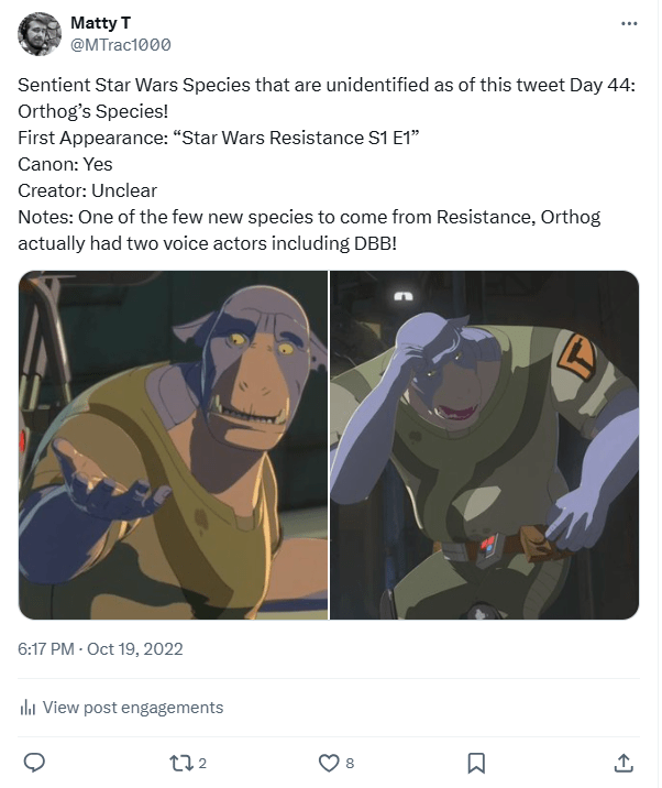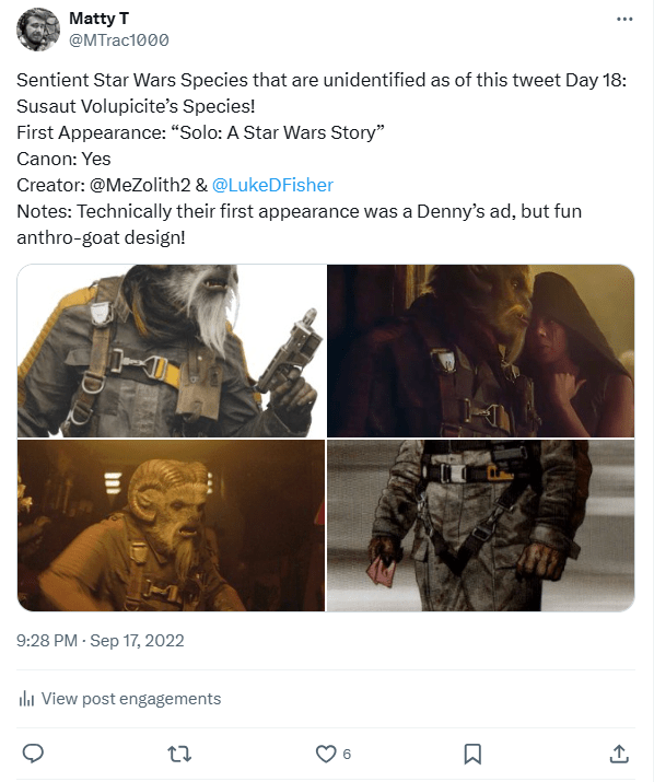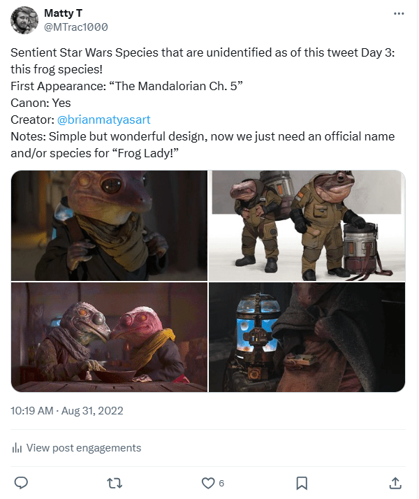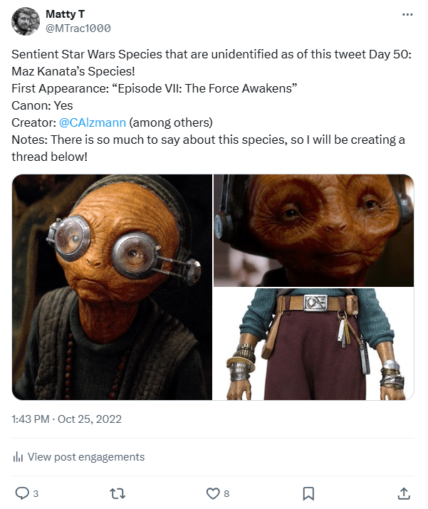I plan on eventually creating a much longer thread regarding this species in the same vein as some of my other deep dives I do for prominent unidentified species every 25 days! Not sure when I’ll get around to it, but I would like to maintain the same level of informational quality that I try to uphold now, I just never expected to do so much research this early on into the series! (Additionally, this was another Wookieepedia article that I did not originally create but did manage to restore after it had been trash compacted due to notability policy changes, so feel free to check it out.)