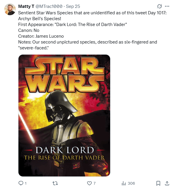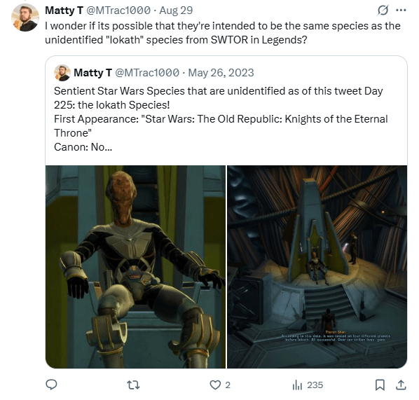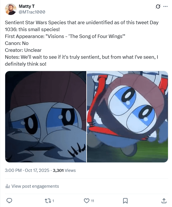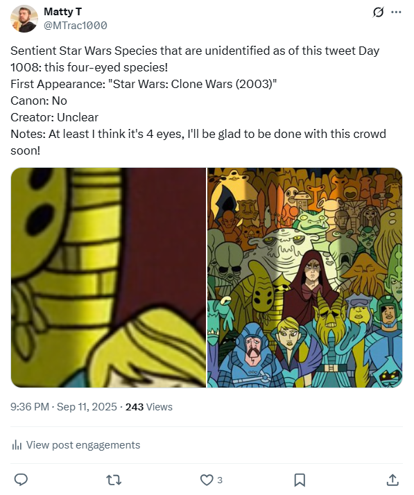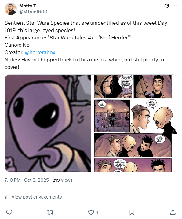 DAY 1048 UPDATE: These species man… still documented them: https://starwars.fandom.com/wiki/Unidentified_species_(RTK111).