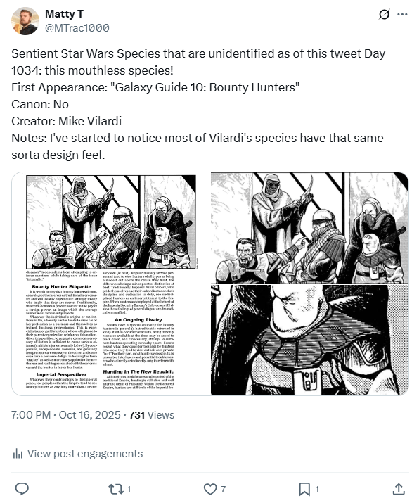 DAY 1034 UPDATE: This species actually reappears, whether through the same individual or another, in the subsequent “Galaxy Guide 11: Criminal Organizations.”