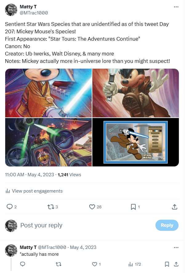 DAY 232 UPDATES: Helped pass a new policy that allowed for the creation of species articles for any new species that appears within a 3D video game, most of which I ended up being able to make, such as this one: https://starwars.fandom.com/wiki/Tulakt%27s_species.