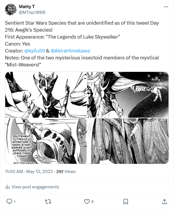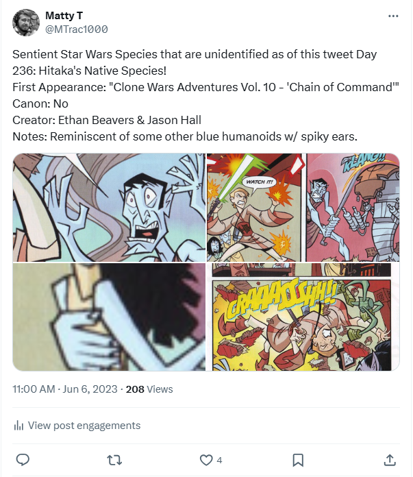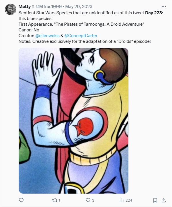 DAY 240 UPDATES: The species was illustrated in the “The Mandalorian” manga adaptation, as seen here (also a cameo from Gekko). Here’s the deets: https://starwars.fandom.com/wiki/Unidentified_pale-blue_humanoid_species.