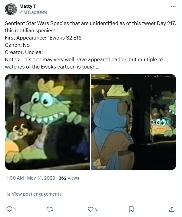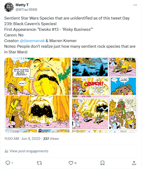 DAY 239 UPDATES: Potentially the same species as “Mount Sorrow,” also native to Endor and found in Ewoks-related media, who I will eventually feature in this series as well.