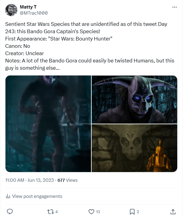 DAY 243 UPDATES: This species actually served as an inspiration for a Canon species (Day 695) featured in the first season of the “The Acolyte” television series, as revealed by David W. Collins on Twitter/X! Went ahead and made the species article for this one as well: https://starwars.fandom.com/wiki/Unidentified_earless_humanoid_species.