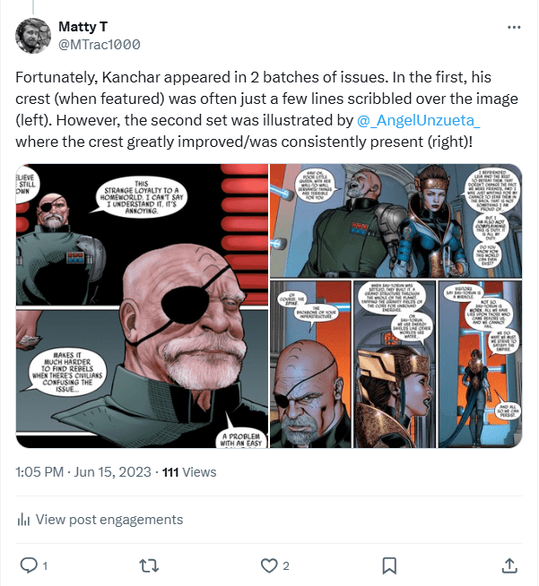 DAY 202 UPDATES: Infil’a has finally made his appearance in The High Republic (Shadows of Starlight #1), teased by Charles Soule a while back! This confirms that the character is well over 200 years old, which also gives us some insight into the species as well. He is also shown to have had blue hair when he was younger, which is an interesting trait and lends to the idea that he may not be a species we’ve known of before. There’s also a standing theory that he’s actually an Evereni, like Marchion and Marda Ro, a species who have seen a lot of prominence during the High Republic era, although one of their main traits, pointed ears, are sorely lacking on Infil’a.