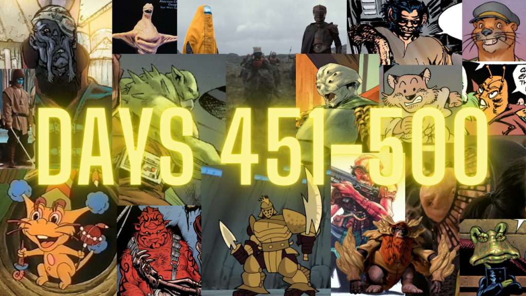 DAY 479 UPDATE: John Jackson Miller revealed that he never detailed Uburluh’s species in the script, and this design was wholly Bong Dazo’s design, who has sadly since passed. This doesn’t mean the species can never appear again, but it does mean we’ll never get any new insider insight regarding their inspirations or design process.