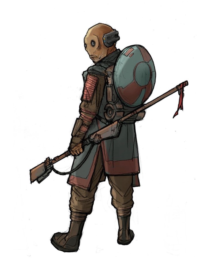DAY 67 UPDATES: We’ve finally located the concept art for this species, as well as the name of the designer and even the tentative name of the character itself! This character was designed by Dylan Howie-Richardson, and appears to be named “Gorg Singo,” though how official this name revealed through ArtStation is remain unclear, and the the species still goes nameless… but at least I was able to make them a page: https://starwars.fandom.com/wiki/Gorg_Singo%27s_species!