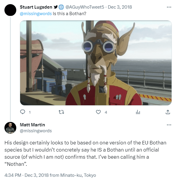 DAY 61 UPDATES: Here’s the “not-a-Bothan” confirmation for this species in a few image archived tweets from both Pablo Hidalgo and Matt Martin (unfortunately the links no longer exist):