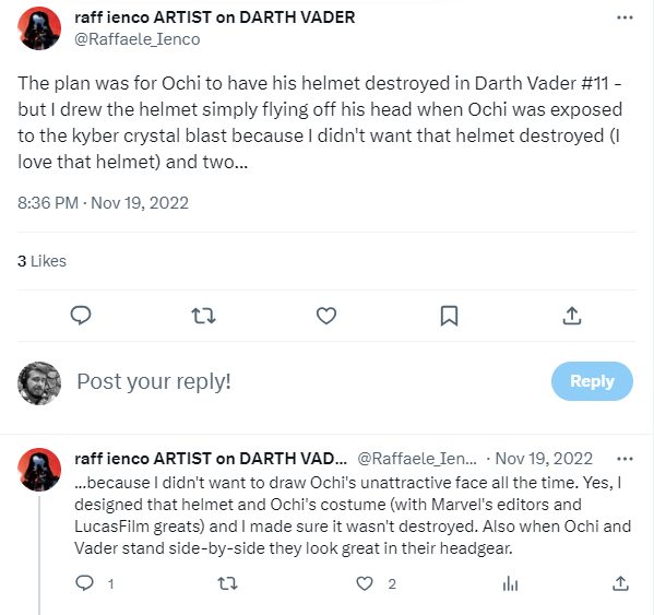 DAY 75 UPDATES: More late-stage concept art by Jake Lunt Davies has surfaced. We also heard from one of the illustrators who has been heavily involved with Ochi’s journey throughout the Star Wars comics, Raffaele Ienco, who gave us some fun insight into the creation of his now iconic helmet!