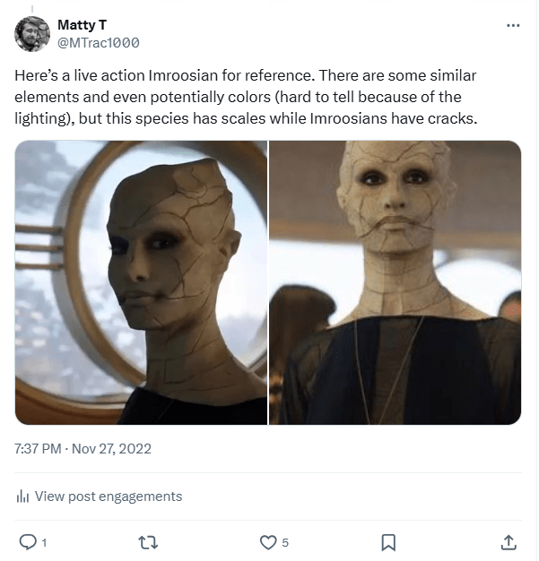 Jake Lunt Davies also left a bit of additional context regarding this species’ design and identified the character actor as Derek Campbell, not incredibly relevant to the purpose of this series but interesting nonetheless!