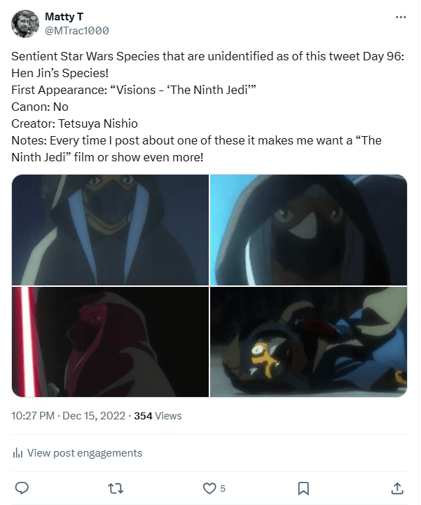 DAY 63 UPDATES: Neat to see this one reappear in Visions Volume 3, hoping we finally get a species name alongside the full “The Ninth Jedi” series!